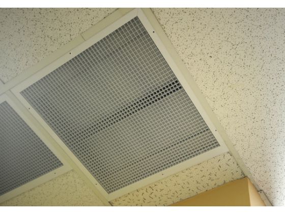 A fan sits behind a grid in the ceiling at Comfort Cool Fans in Laguna Hills. (Photo: Kent Treptow, for the Orange County Register).
